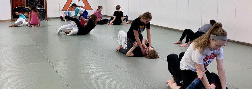 Brazilian JiuJitsu is excellent for women’s self-defense in particular, as they are more likely than men to be at a significant physical disadvantage if they are attacked. Featured in women’s self-defense concerns is rape prevention, and BJJ addresses this well. While students learn techniques from standing to be able to get grabbing hands off and to throw someone to the ground, jiujitsu is mainly a ground-based sport. We are not defeated when our backs are on the ground and we have a person between our legs. Instead, we are the aggressors in that position with a rich and powerful menu of options to utilize, and hours of experience applying our moves on men who do not want to tap and are resisting 100%.